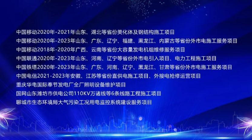 公司与各级政府、企事业单位、中国移动、中国电信、中国联通、中国铁塔、中国铁通确立了长期的合作伙伴关系,完成多项大型通信施工建设项目,并与华为、中兴、爱立信、海康、大华、宇视等国内外知名企业建立长期合作关系。具有丰富的大型通信项目施工经验。得到政府、社会各界、行业内外的一致好评!