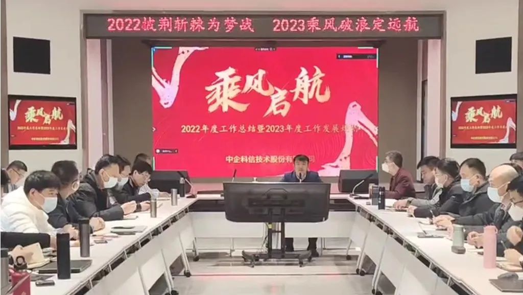 春华秋实又一载,砥砺奋进谱新篇。2023年1月27日,中企科信2022年度工作总结暨2023年工作部署会议以线上线下相结合的形式隆重召开,公司领导、各部门主管以及各省市分公司部分人员等1200余人参加,董事长邱德武亲自主持会议。
